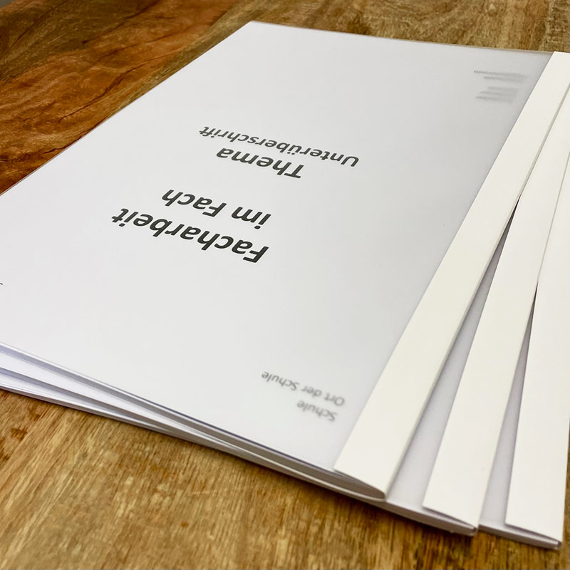 | Facharbeit, Abschlussarbeit, Projektarbeit | Kunststoffcover-Bindung | 90g | 24,00 € | 120g | 24,40 € |