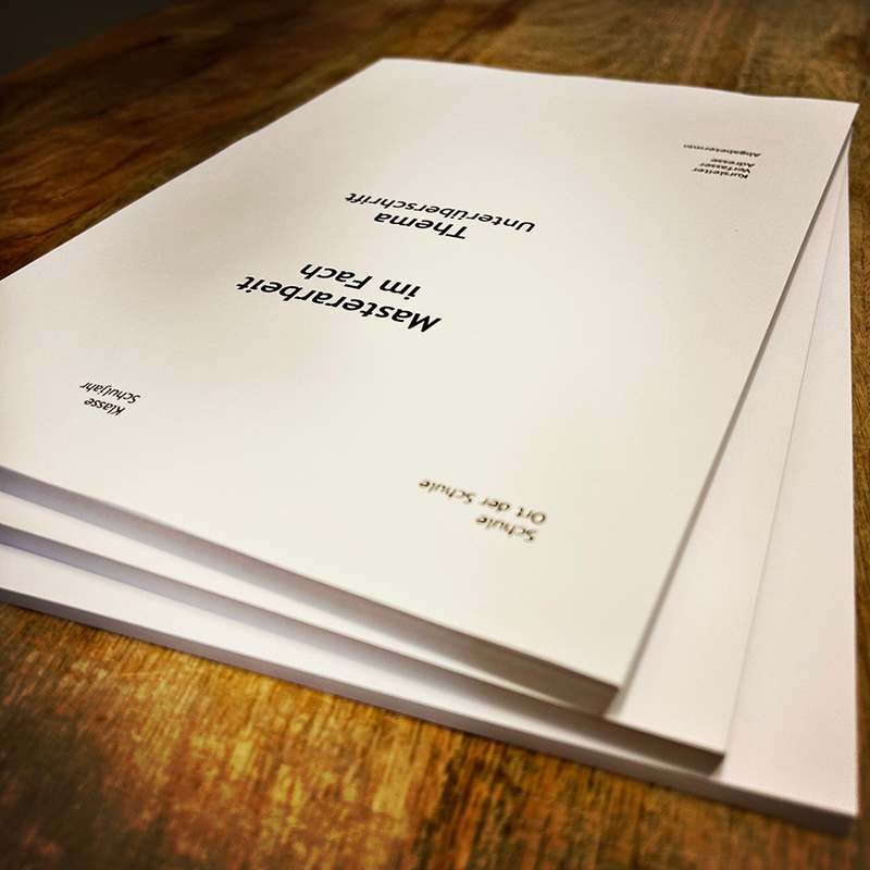 350 g farbigen Pappe als Schlussblatt aus.